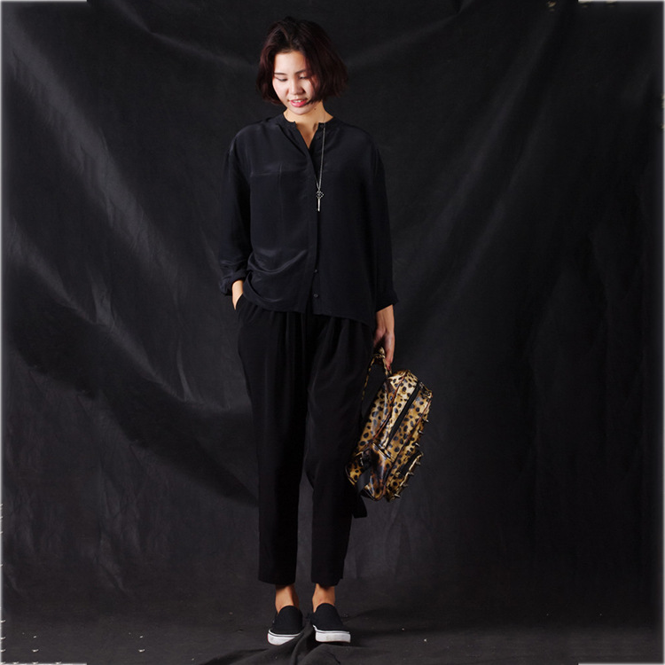 女裝2015秋冬歐美時尚襯衣 圓領(lǐng)純長袖真絲連體女襯衫批發(fā) /