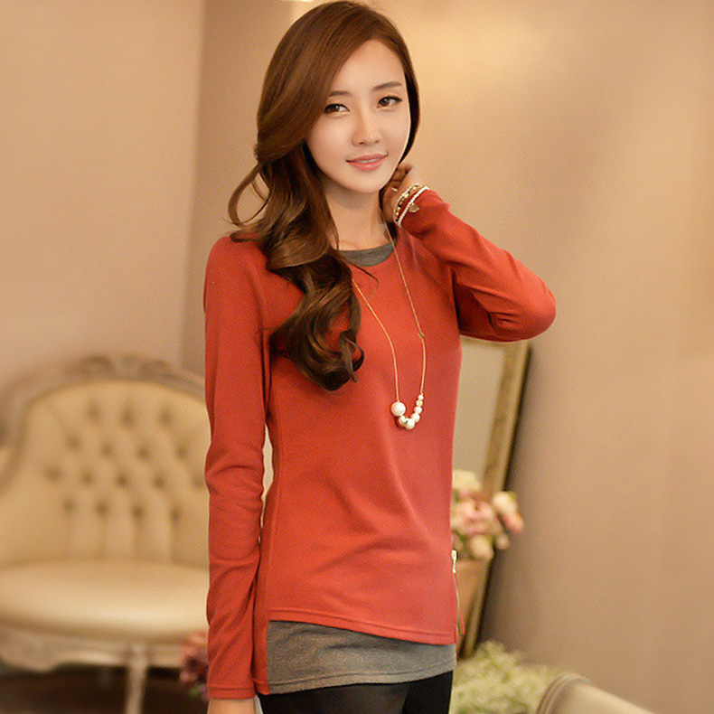 2015秋季新品韓國時尚女裝撞色拼接純棉長袖打底衫女士T恤女批發(fā) /