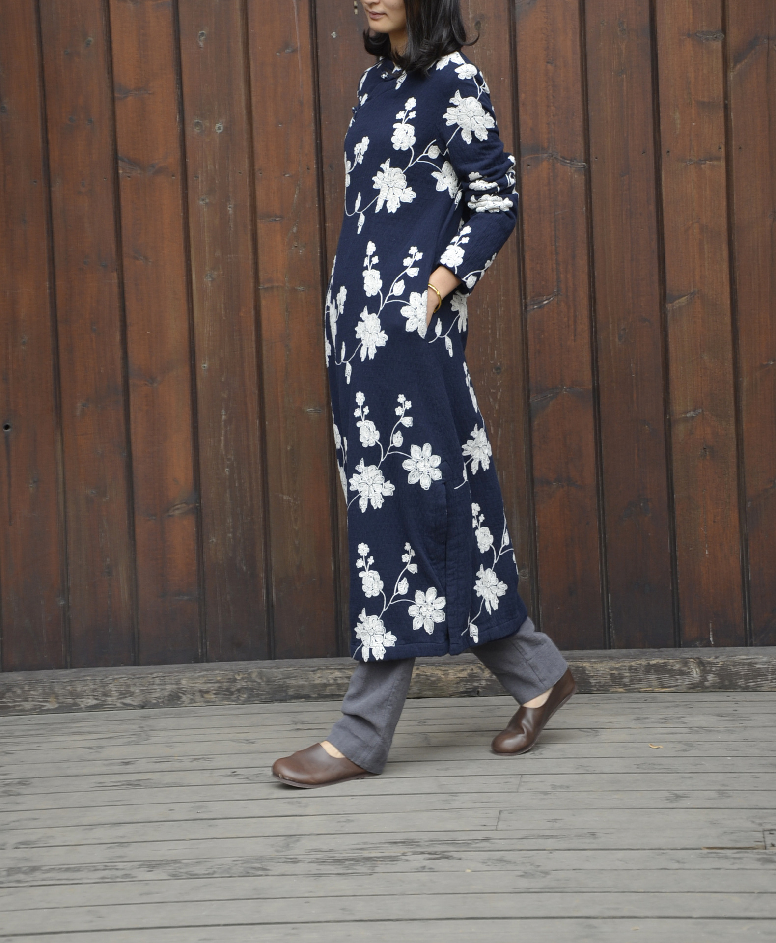2015冬新款棉麻刺繡花高端旗袍寬松手工盤扣復(fù)古文藝加厚連衣裙 /