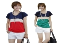 2016熱賣女裝拼色雪紡衫 韓版大碼短袖寬松百搭上衣打底衫 /