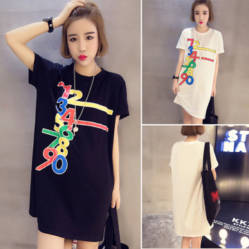 M52#2016夏季新 韓版彩色數字短袖直筒中長款T恤 寬松顯瘦上衣 /
