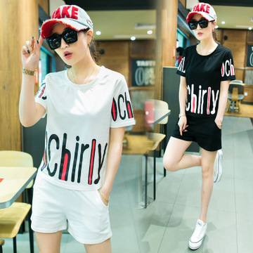 2016韓版休閑套裝印花短袖運(yùn)動服女士短款寬松兩件套學(xué)生 /