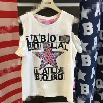 lalabobo16夏T恤女露肩亮片星星字母個性休閑潮學(xué)院風(fēng)純棉彈力 /