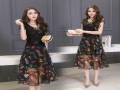 夏新款女裝中腰顯瘦大擺短袖雪紡印花連衣裙長裙 /