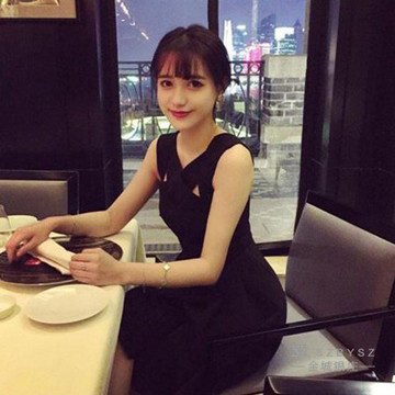 韓國代購2016夏裝露背性感名媛顯瘦A字短裙無袖背心小黑裙連衣裙 /