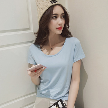 實(shí)拍 純色短袖t恤女 韓版夏裝修身百搭休閑半袖體恤打底衫 /