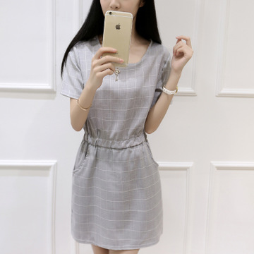 8989韓版連衣裙女夏 歐洲站夏裙圓領(lǐng)時(shí)尚修身裙 /