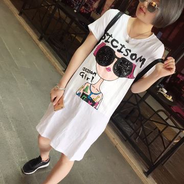 2016夏 韓版長款亮片墨鏡女孩寬松圓領(lǐng)短袖T恤 /