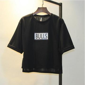 2016氣質(zhì)顯瘦夏季新款韓國洋氣吊帶露肩學生字母t恤韓范V領(lǐng) /