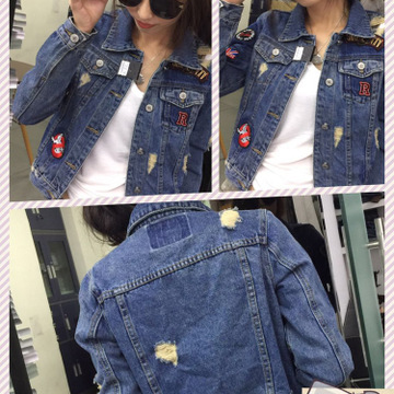 學(xué)生2016女裝修身短褲翻領(lǐng)外套 韓版女牛仔服 一件代發(fā) /