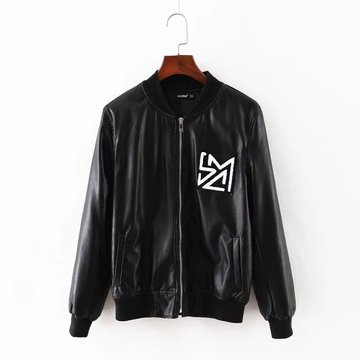 2016歐美風春夏女裝新款批發(fā)貼布繡飛行皮夾克 /