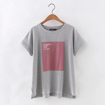 2016歐美風春夏女裝新款批發(fā)寬松純棉條紋印花T恤 /
