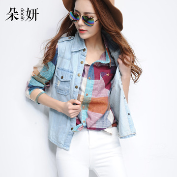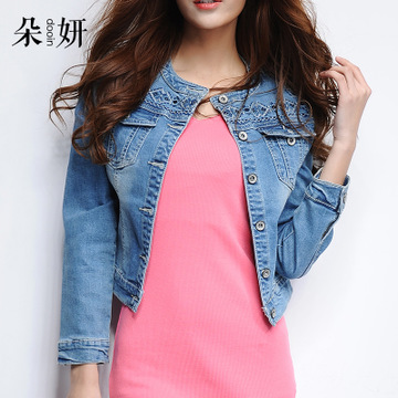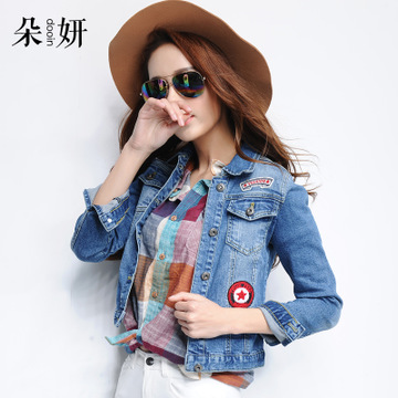 2016春秋新款韓國大碼復(fù)古長袖牛仔外套女百搭修身短外套夾克上衣 /