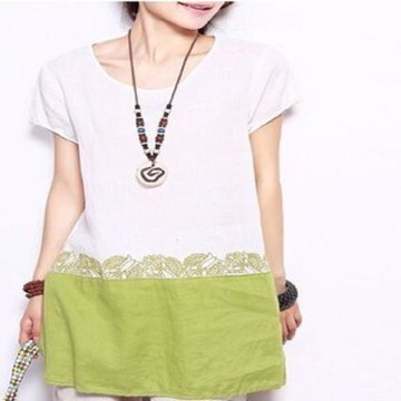 2016夏裝新款棉麻t恤女寬松中長款文藝短袖大碼繡花上衣 /