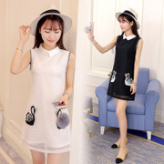 2016春夏女裝顯瘦歐根紗清新甜美中裙無袖刺繡A字裙連衣裙 /
