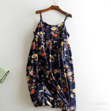 LL23-寬松款吊帶碎花裙~2016春夏女裝新品清爽小花大版連衣裙雪紡 /