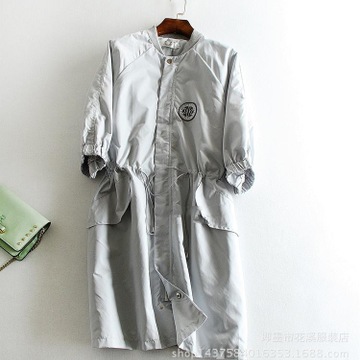 WP54-裙式風衣~2016春夏女裝新品 抽繩款棒球領(lǐng) 挺括面料長外套 /