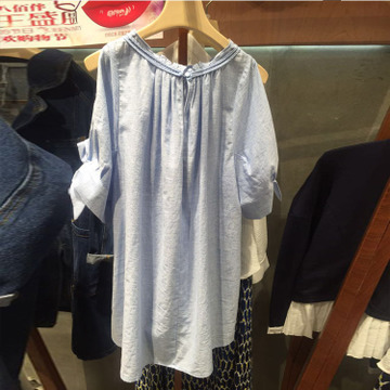 現貨微信代理2016夏季新款圓領五分袖純色襯衫女MQBL326G一件代發(fā) /