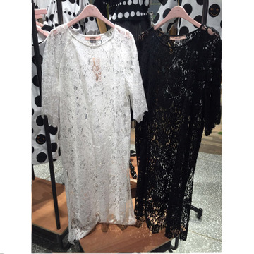 現貨微信代理2016夏季新款女式蕾絲黑白鏤空長裙JQOP325A一件代發(fā) /