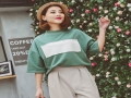 2016春夏新款短袖T寬松顯瘦女衫圓領(lǐng)拼接純色T恤下擺開叉上衣女潮 /