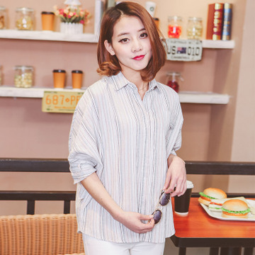 襯衣女七分袖2016春款上衣韓版女裝顯瘦修身襯衣條紋寬松襯衫女潮 /