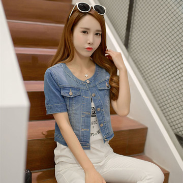 實拍2016夏季短袖圓領牛仔小外套女短款時尚修身上衣薄韓版潮 /