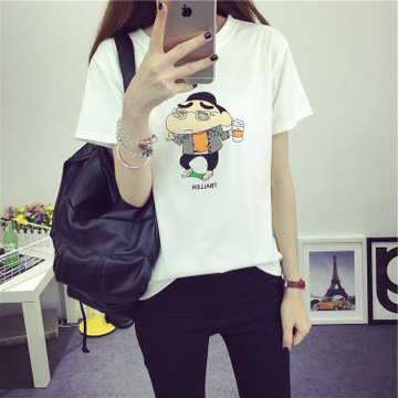 新款韓版蠟筆小新卡通印花短袖T恤 女士棉質(zhì)打底衫上衣 /