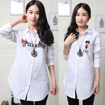 胖MM白色純棉襯衫女2016春裝新款時尚女裝長袖襯衣中長款 /