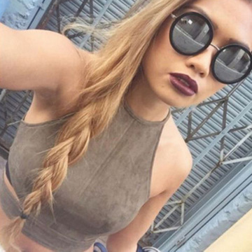 速賣通爆款 歐美性感鹿皮絨緊身露臍打底T恤背心T542 /