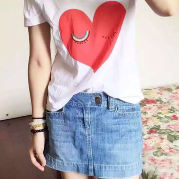 歐美2016春夏女睫毛大紅心T恤 眨眼愛心彩虹眼睛愛心V領(lǐng)女短袖 /
