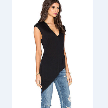 2016春季新款V領(lǐng)短袖熱賣不規(guī)則下擺中長T恤 /