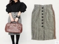 大量現(xiàn)貨2015秋冬半身裙中長(zhǎng)裙花毛呢子復(fù)古高腰修身包臀裙 /