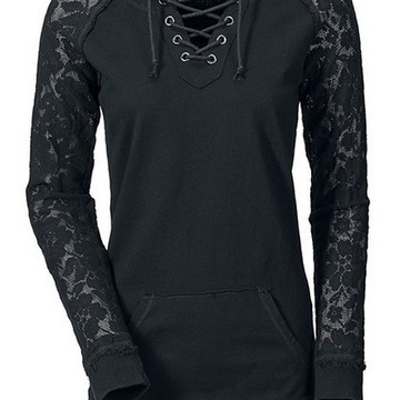 2015歐美速賣(mài)通新款蕾絲拼接抽繩衛(wèi)衣 /