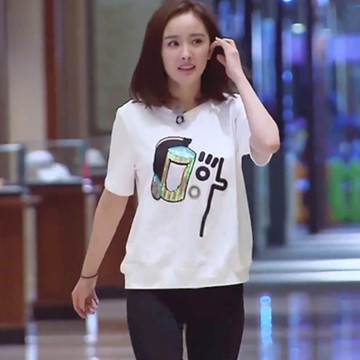 奔跑吧兄弟楊冪明星同款2016夏裝新款韓版圓領(lǐng)寬松短袖T恤女 /