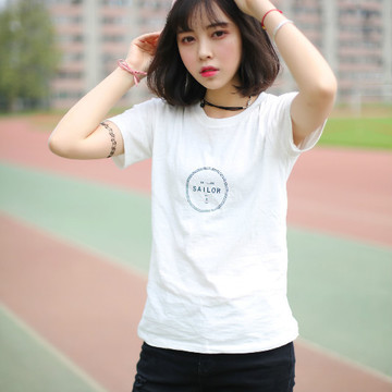 2016春夏裝韓國(guó)新款時(shí)尚潮流百搭修身純色字母短袖T恤女 /