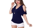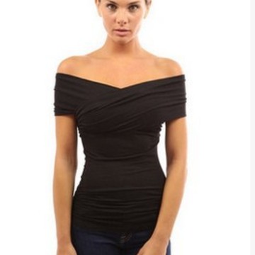 2016 歐美熱賣性感V領(lǐng)露肩褶皺T恤 /