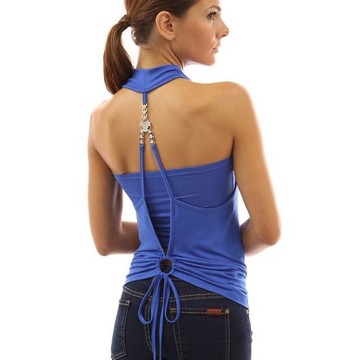 2106歐美熱賣性感掛脖堆領(lǐng)露背二件套T恤 /