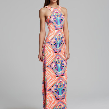 歐美波普風(fēng)3D印花性感開叉露背連衣裙爆款夜店拖地長(zhǎng)裙子 /