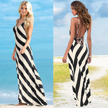 2016夏季速賣通ebay亞馬遜爆款印花條紋連衣裙 沙灘裙 現(xiàn)貨銷售 /