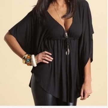 2016速賣通ebay 亞馬遜歐美新款胖MM不規(guī)則蝙蝠衫上衣大碼女裝T恤 /