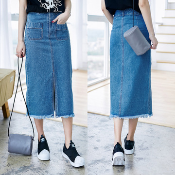 尚菲2016夏純色前開(kāi)叉半身裙 /