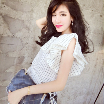潮裝家族 鵬泰定制 定制面料 珍珠荷葉顯瘦大水袖衫 /