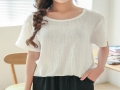 短袖T恤女夏亞棉麻中長款上衣裝大碼圓領(lǐng)寬松純色文藝簡約打底衫 /