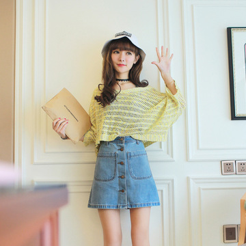 韓版顯瘦 春夏新款高腰復(fù)古牛仔半身裙 /