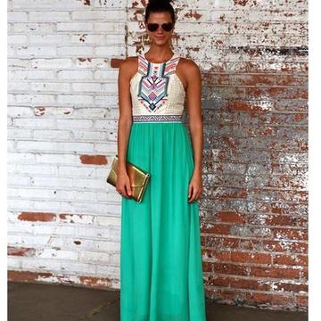 2015速賣通爆款外貿(mào)時尚無袖雪紡拼接長連衣裙禮服 /