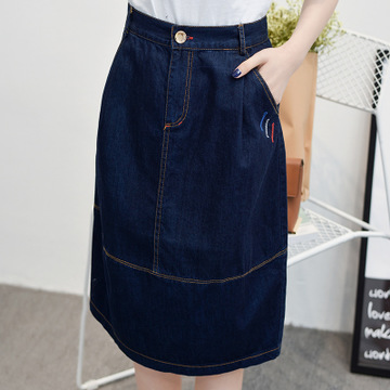 2016春夏新款牛仔中長(zhǎng)裙韓國(guó)大碼修身半身裙學(xué)院風(fēng)牛仔裙子 /