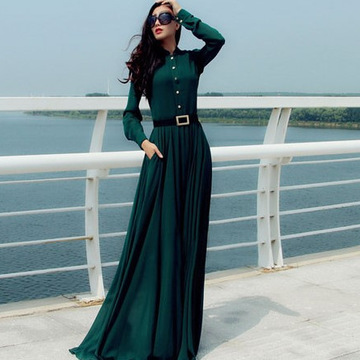 速賣通爆款高端大牌氣質復古長袖連衣裙拖地長裙大碼女裝 /