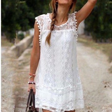 速賣通爆款 歐美新款蕾絲拼接球球連衣裙(有里布) /
