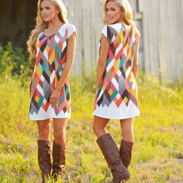 2016新款高清數(shù)碼定位印花 短袖連衣裙 /
