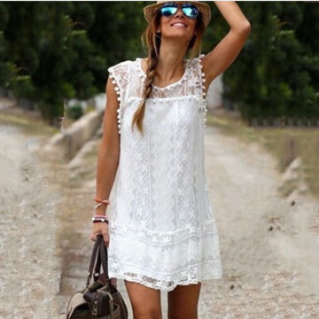 2016年歐美白色蕾絲花邊優(yōu)雅無袖連衣裙 /